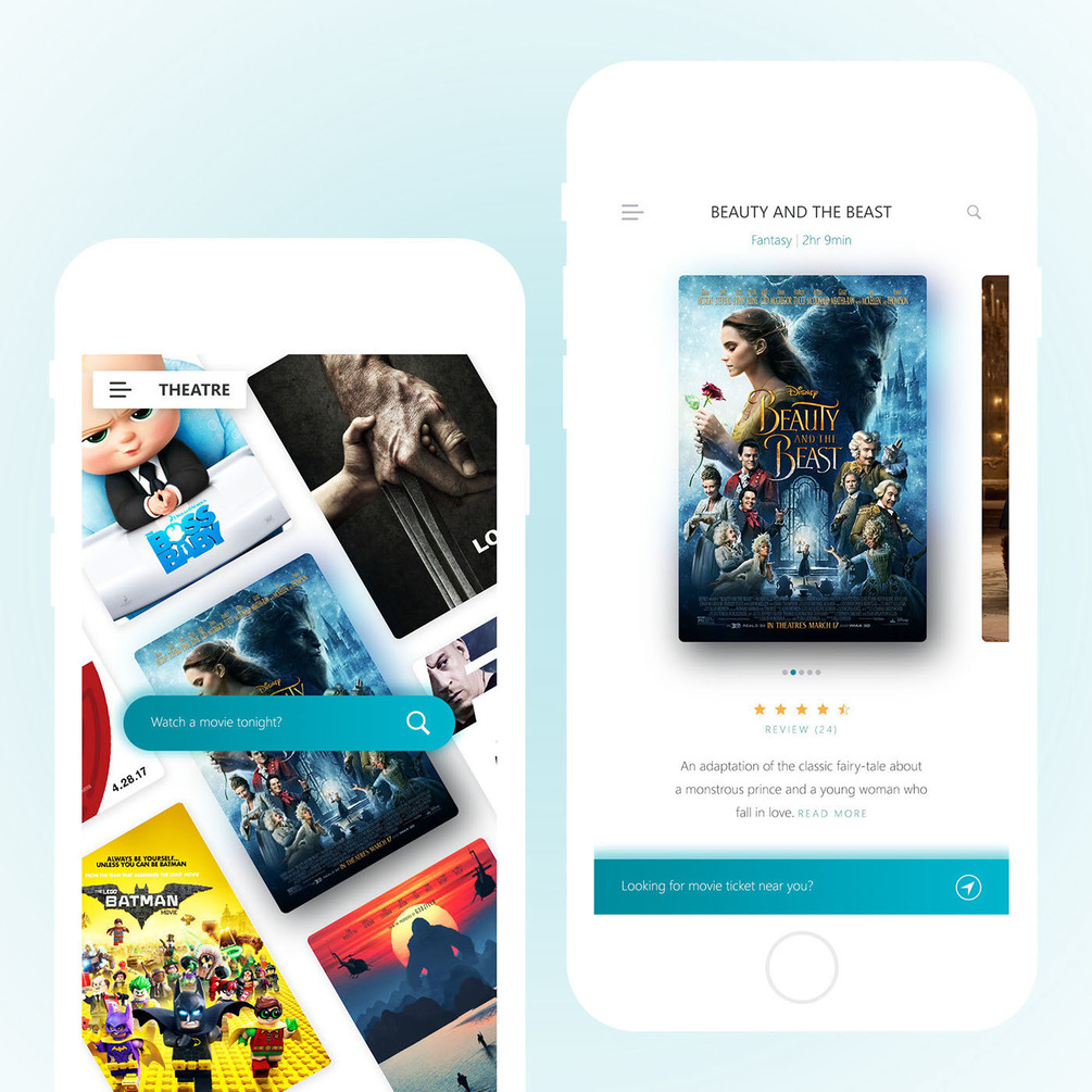THEATRE Movie ticket mobile app and website design. Ultra-responsive for mobile app and also web app.